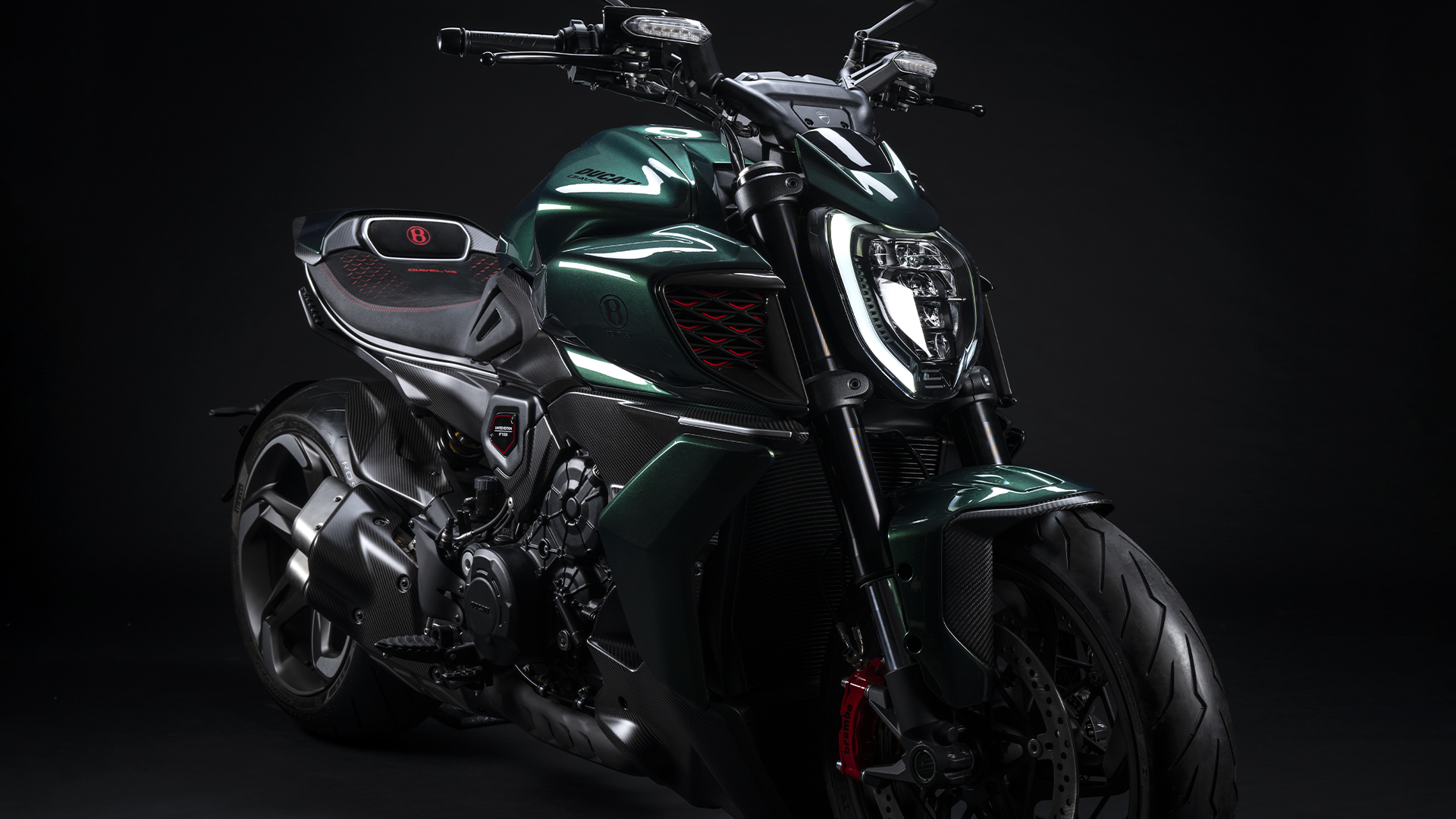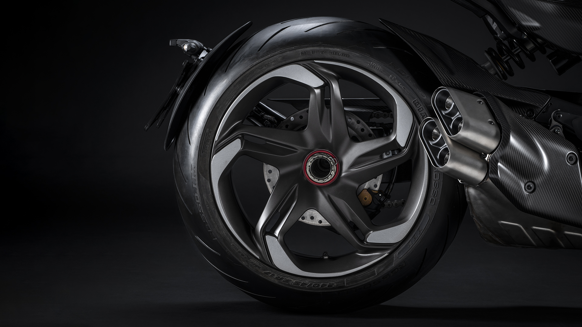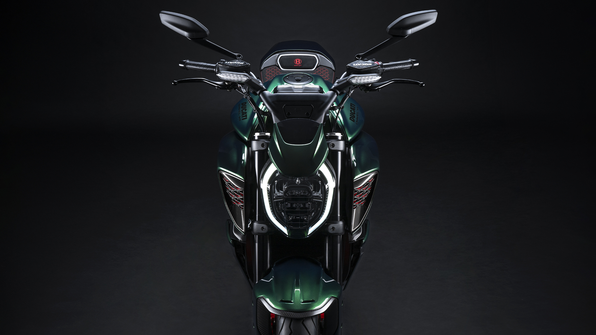 Ducati Quick Shift, Ducati Power Launch, Cruise control, Hands-Free, 5" TFT colour display, Ducati Multimedia System, Turn-by-turn navigation system, Backlit handlebar switches, Full-LED lighting system, Dynamic turn indicators*, Key-on animation for rear light, Forged wheels, Carbon fiber parts, Alcantara seat